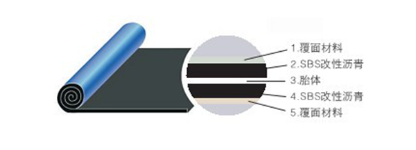 SBS彈性體改性瀝青防水卷材是以SBS(苯乙烯-丁二烯-苯乙烯)熱塑性彈性體改性瀝青為浸涂材料,以好的聚酯胎、玻纖胎、復(fù)合胎布為胎基,以聚乙烯膜(PE)、細(xì)砂(S)、礦物粒料(M)為覆面材料,采用的工藝精制而成的高彈性熱熔防水卷材。