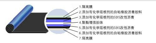女神防水在自粘防水卷材的基礎(chǔ)上針對(duì)有種植要求的地下室 頂部、屋面等部位,生產(chǎn)了耐根穿刺自粘防水卷材。該材料是以長(zhǎng)纖聚酯纖維氈為增強(qiáng)胎基,以添加進(jìn)口化學(xué)阻根劑的自粘改性瀝青為涂蓋材 料,兩面覆以聚乙烯膜為隔離材料制成的自粘類改性瀝青卷材。